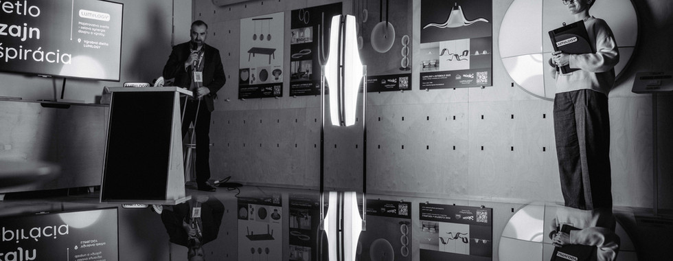 Druhá časť večera patrila budúcnosti. Na jar sme v spolupráci so Slovenskou asociáciou interiérových dizajnérov (SAID) v rámci festivalu Intebold vyhlásili súťaž o nový dizajn svietidla pre LUMILOGY. Zadanie bolo náročné: navrhnúť svietidlo, ktoré odhalí poctivosť. Z 27 prihlásených dizajnérov sme počas večera spoznali víťaza a finalistov, ktorí nám odprezentovali svoje návrhy.